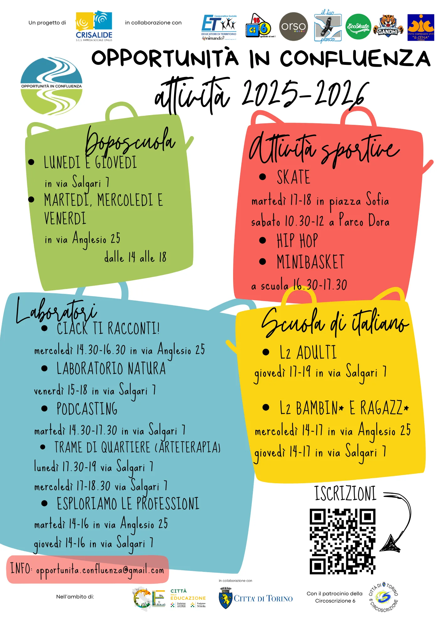 Si tratta di un progetto finanziato dalla Fondazione Compagnia di San Paolo, nell’ambito del bando “RiSalto – Percorsi e sistemi educativi per stare bene insieme e scoprire nuove passioni” all’interno del programma “Torino – Città dell’Educazione”, che permette di offrire attività gratuite ai giovani del quartiere, nella fascia di età 6-13 anni.